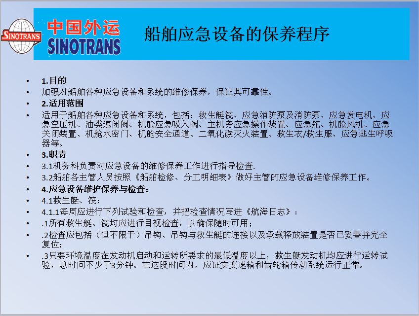 船舶應(yīng)急設(shè)備的保養(yǎng)程序